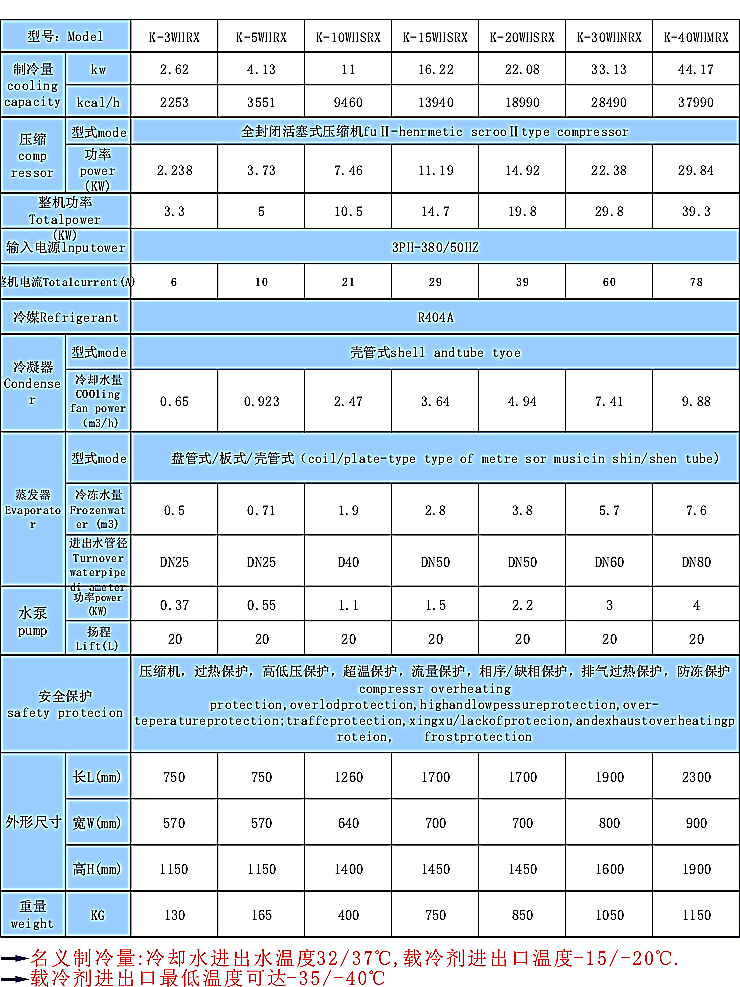 中低溫制冷機組參數